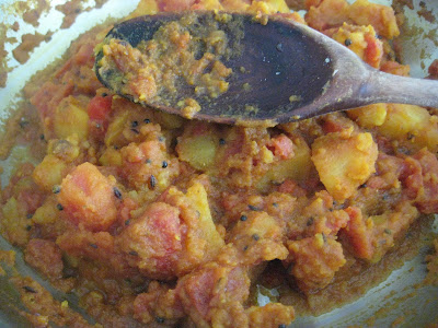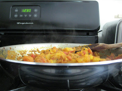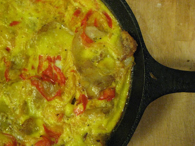 I previously blogged about this dish back in 2006, using Deborah Madison's recipe. Mark Bittman was my chef this week. His recipe is more simple with fewer ingredients. I love this one too. The eggs were moist and the potato perfectly cooked through. Some of the potatoes on top were a little crunchy, like potato chips and they were yummy, really. Next time, I think I will add a dash of chili flakes for a little heat. I couldn't stop picking at it until the guests arrived.